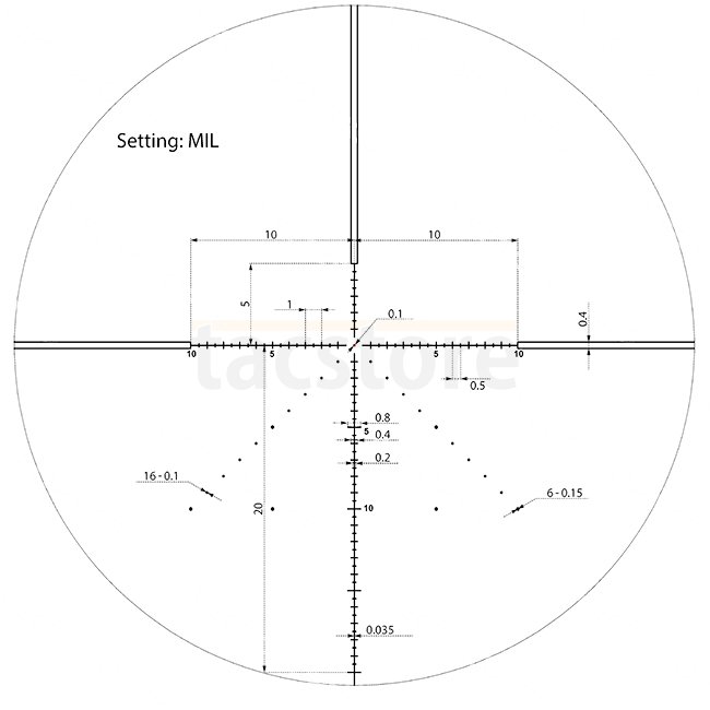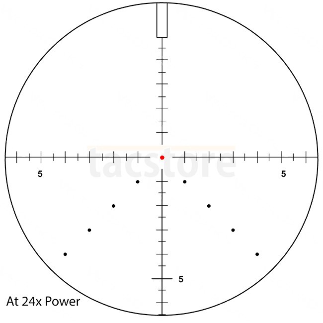 Cette lunette compacte propose un grossissement de 6- à 24× avec un objectif de 44 mm, conçue pour la précision et la polyvalence. Le tube monocoque de 30 mm permet une large plage de réglage (élévation/derive env. 14.5 MIL) avec un clic de 1/10 MIL. Le réticule au premier plan focal (FFP) MPR-V5 est illuminé et dispose d’un point central de 0,1 MIL pour une visée précise. Le réglage de parallaxe commence dès env. 10 m, et la lunette mesure seulement env. 295 mm de long avec un boîtier en alliage d’aluminium haut de gamme pour une robustesse optimale.