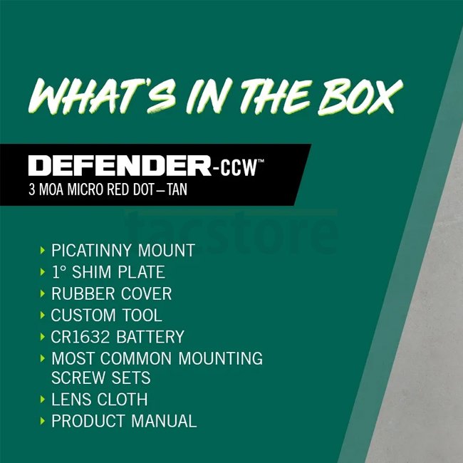 Le Defender‑CCW est conçu pour le Carry dissimulé et l’usage quotidien. Sa taille compacte avec empreinte Shield RMS le rend discret sur arme de poing. Sa lentille asphérique durcie offre une vision claire et sans distorsion.