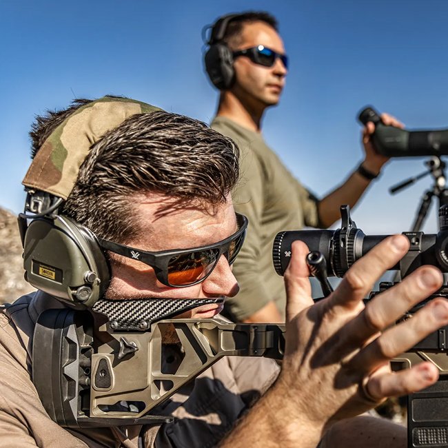 Les Vortex Jackal Performance Sunglasses sont spécialement conçues pour les tireurs exigeants qui ont besoin d'une vision claire et d'une protection supérieure dans toutes les situations. Des premières lueurs au coucher du soleil, ces lunettes de soleil garantissent non seulement la sécurité mais aussi une flexibilité élégante pour chaque aventure. Fabriquées à partir de matériaux légers, flexibles et testés balistiquement, les lunettes de soleil Jackal sont dotées d'un pont et de branches antidérapants pour un ajustement confortable et sécurisé. Différentes couleurs de verres permettent de s'adapter à n'importe quel environnement, de sorte que les cibles restent toujours clairement visibles.