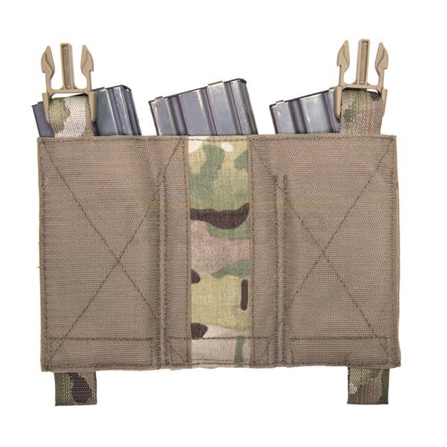 La DFP-TEMP est un panneau MOLLE avant détachable qui se fixe sur le devant du Warrior Recon Plate Carrier (RPC) via deux clips SQM verticaux. Conçue pour une solution tactique discrète, elle assure un maintien sécurisé tout en permettant un accès rapide pour des rechargements accélérés.