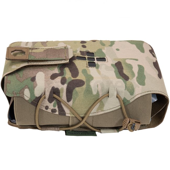 Le Laser Cut Large Horizontal Individual First Aid Kit (IFAK) de Warrior Assault Systems est conçu pour accueillir un kit médical complet adapté aux opérateurs des forces spéciales. Il permet de loger en toute sécurité plusieurs compresses hémostatiques, pansements thoraciques, garrots CAT, bandages de traumatologie et voies respiratoires nasopharyngées dans une pochette intérieure amovible dotée de poches et de boucles élastiques. La pochette est accessible d'une seule main grâce à une languette en Hypalon, pour une extraction rapide en situation critique.