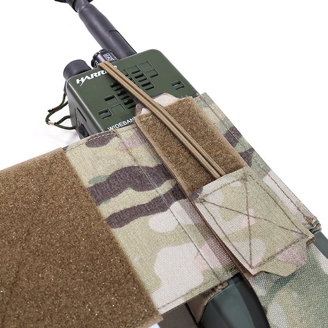 La pochette radio ajustable Velcro Wing (Côté Gauche) est conçue pour s’adapter à une large gamme de radios personnelles. Son système de fermeture à Velcro et élastique réglable permet un ajustement sécurisé pour différentes tailles de radios. La pochette se fixe sous le panneau avant des porte-plaques, avec la ceinture latérale venant la recouvrir pour plus de sécurité. Cette conception permet de maintenir la radio près du corps de l’opérateur, réduisant l’encombrement et minimisant les risques d’accrochage.