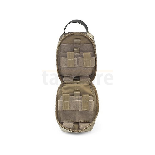 Le Warrior Personal Medic Rip Off - Coyote est une solution compacte et polyvalente pour le matériel médical. Il se fixe facilement aux gilets et sacs compatibles MOLLE.