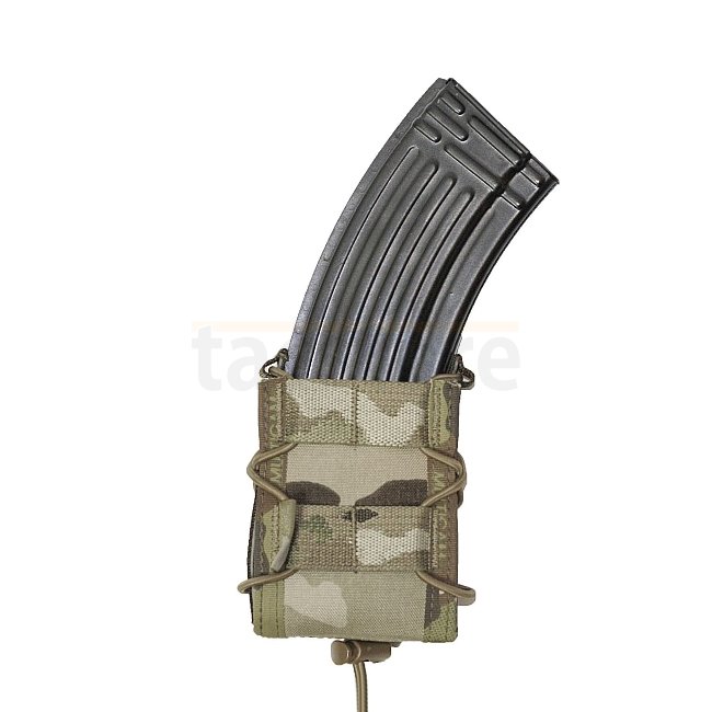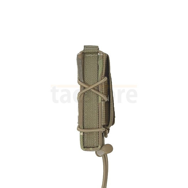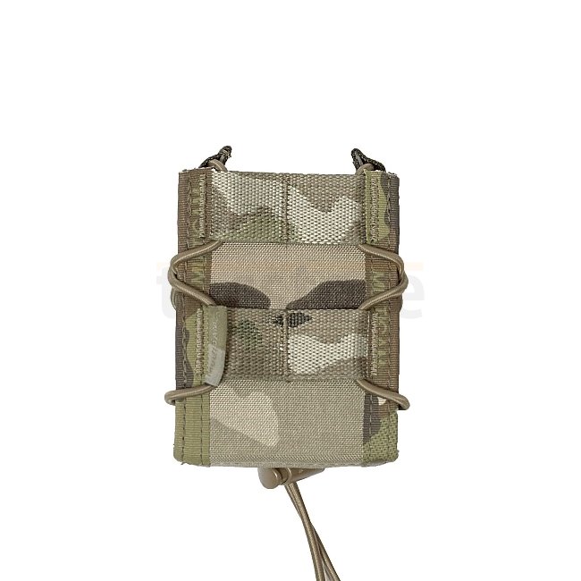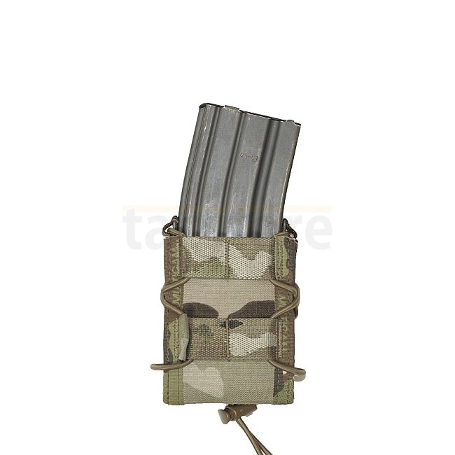 La pochette Warrior Single Quick Mag est une pochette polyvalente conçue pour transporter divers chargeurs 5,56mm, y compris les P-Mags, ainsi que les chargeurs 7,62mm x 39mm AK, M14 et FAL. L’ajustement de la taille se fait à l’aide de cordons élastiques passant sur les côtés de la pochette. Des languettes de rétention en bungee optionnelles peuvent être ajoutées pour une sécurité accrue, similaires à celles des pochettes ouvertes Warrior Assault Systems.