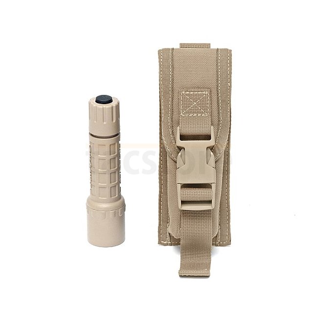 Pochette Petite Torche Compact Warrior en couleur coyote, compatible avec le système MOLLE pour une fixation pratique.