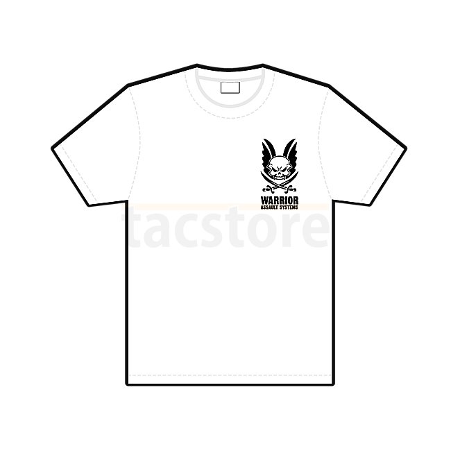 T-shirt Warrior en blanc - Tailles S, M, L, XL, XXL avec mesures de poitrine.