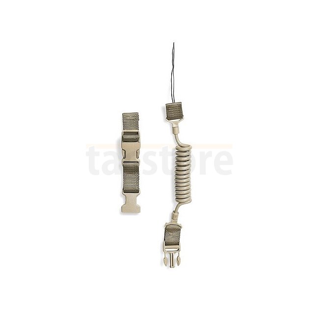 Dragonne tactique Warrior en couleur Coyote. Fabriquée à partir de sangle spécification militaire américaine 17337, de nylon et de polypropylène. Comporte une boucle de ceinture ajustable avec un clip de dégagement rapide. Idéale pour sécuriser les armes