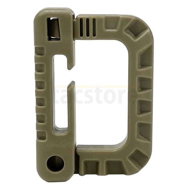 Fixez en toute sécurité l'équipement avec le carabiner en plastique Woojin en Tan. Idéal pour attacher du matériel sur le système MOLLE. Dimensions : 50 x 38 x 12 mm. Largeur de sangle maximum : 25 mm. Avertissement : Ne convient pas pour l'escalade ou le