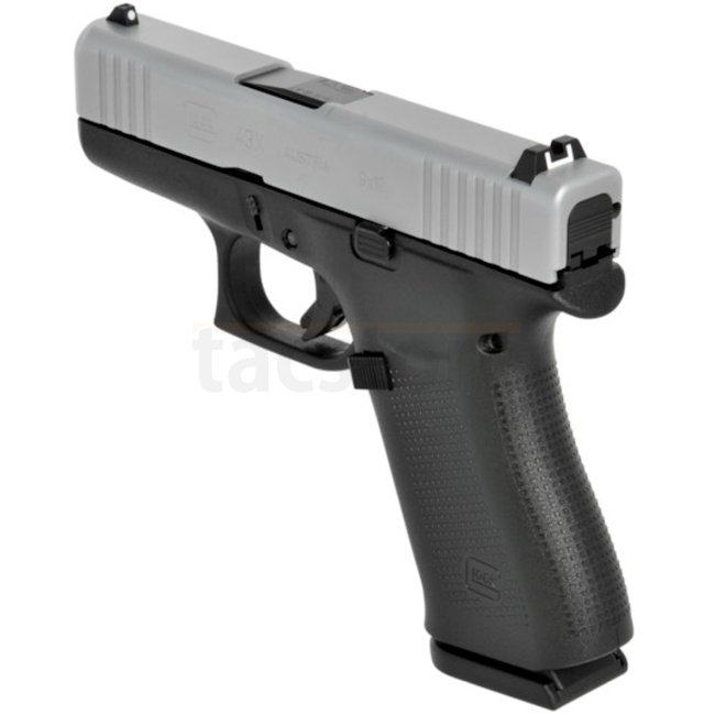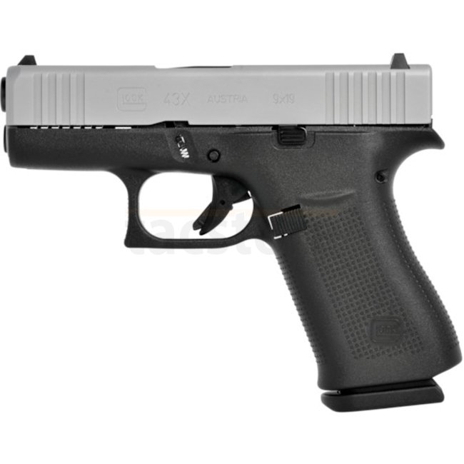 Die Glock 43X Silver Slide FS kombiniert die kompakte Größe der Glock 43-Serie mit einem verlängerten Griff und einem markanten silbernen Schlitten. Im Kaliber 9x19mm bietet diese Pistole eine perfekte Balance zwischen Verdeckbarkeit und Kontrolle. Die Front Serrations (FS) ermöglichen eine verbesserte Schlittenmanipulation, und das Slimline-Design sorgt für einfache Handhabung und Komfort im Alltag. Eine zuverlässige und stilvolle Wahl für die persönliche Verteidigung und das verdeckte Tragen.