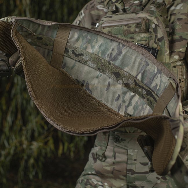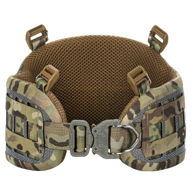 Der Gürtel ist leicht und ermöglicht die bequeme Befestigung von MOLLE-kompatibler Ausrüstung. Taschen können entweder durch Ziehen der Riemen durch Cordura 500D (dies ist eine einfachere und schnellere Befestigungsmöglichkeit) oder durch Tegris (diese Option bietet eine starrere Befestigung) befestigt werden.