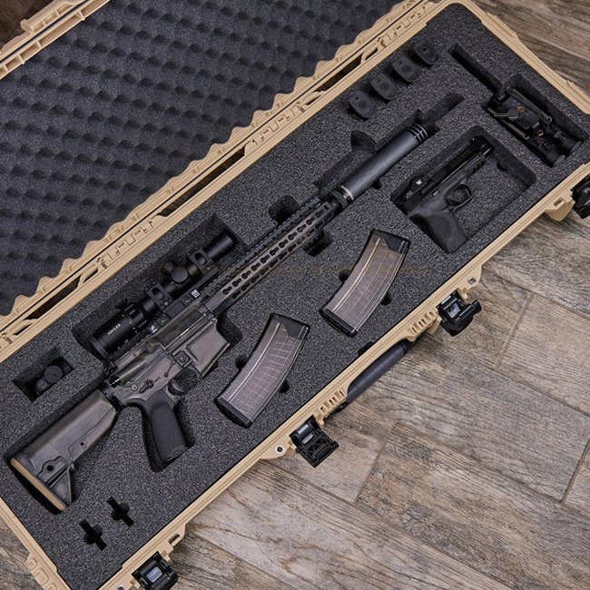 • Innenkonfiguration: Vorgefertigte AR-Schaumeinlage (geschlossenzellig) für Gewehr, Magazine und Zubehör