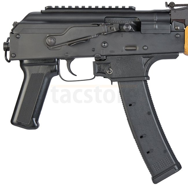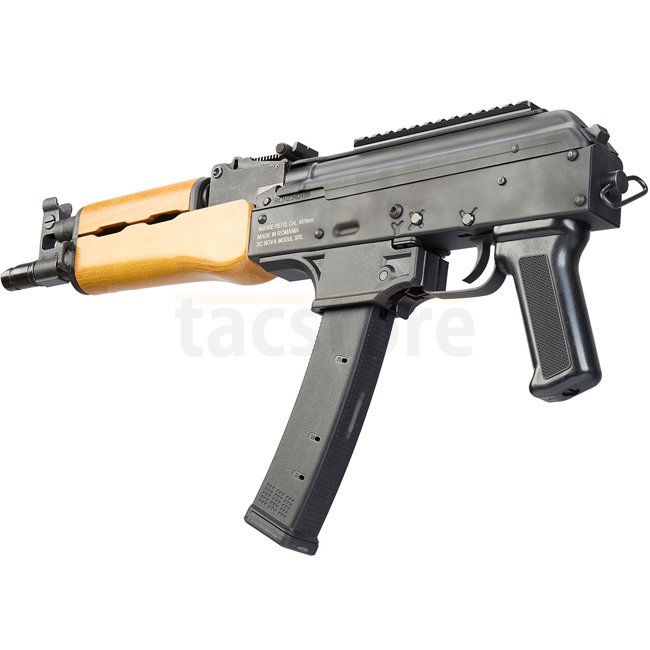Kompakte, praxisorientierte Pistolenvariante basierend auf der NAK9-Plattform mit Holz-Handschützern und Kompatibilität zu CZ Scorpion Evo Magazinen; in europäischen Konfigurationen mit flexiblen Magazinoptionen lieferbar.