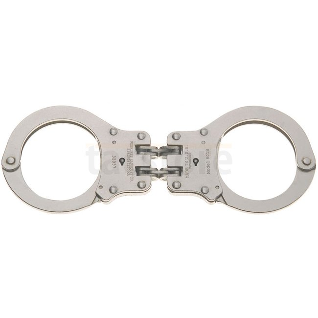 Das Modell 801C verfügt über einen verbesserten internen Verriegelungsmechanismus für mehr Manipulationssicherheit, sanftere Ratschenfunktion und längere Haltbarkeit. Das Scharnierdesign sorgt für zusätzliche Sicherheit, indem es die Bewegung von Hand und Arm effektiver einschränkt. Die 801C Handschellen verfügen über eine Konstruktion aus gezogenen Nieten, eine doppelte Druckstiftverriegelung und eine Nickeloberfläche. Zwei Schlüssel werden mitgeliefert. Das Modell 801C ist vom National Institute of Justice 0307.01 zertifiziert. Lebenslange Garantie auf Herstellermängel. Hergestellt in den USA.