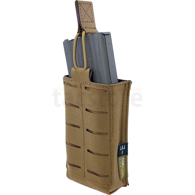 Die Pitchfork Open Single Rifle Magazine Pouch - Coyote kann sicher eine Vielzahl von Gewehrmagazinen halten, mit verstellbarem Hypalon-Zuglasche und rutschfester Innenbeschichtung für besseren Halt. Auf der Vorderseite befindet sich eine LaserCut-Oberflä