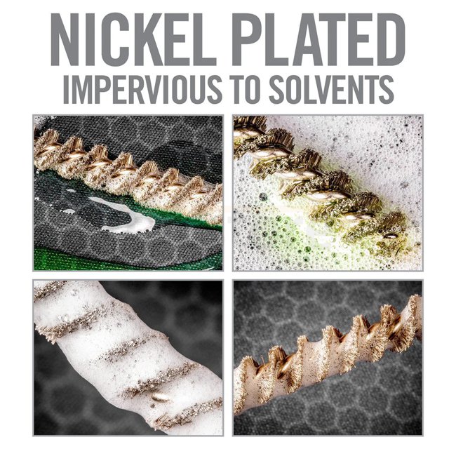 • Vernickelte Phosphor-Bronze-Borsten widerstehen Lösungsmitteln und verlängern die Lebensdauer