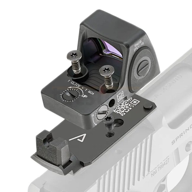 AOS-Platten nehmen gängige Micro-Red-Dots auf und ermöglichen nahezu Co-Witness mit den Eisenvisieren.