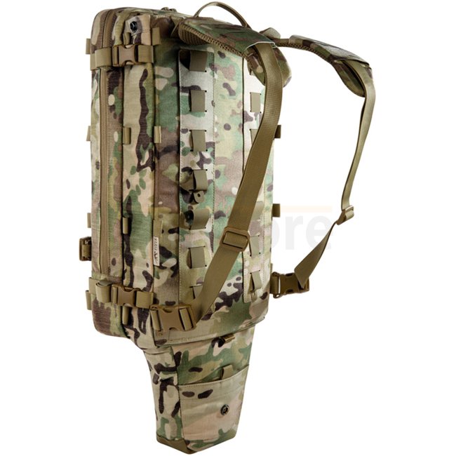 Der TT Breacher Pack MC wurde für den taktischen Zugriff entwickelt. Er enthält zwei herausnehmbare Werkzeugröhren, die für Bolzenschneider bis 80 cm Länge geeignet sind. Das Design ermöglicht das Tragen über Schutzwesten oder die direkte Montage an Plattenträgern mit dem mitgelieferten Adaptersystem. Der umlaufende Reißverschluss am Frontfach erlaubt den vollen Zugriff auf den Inhalt.