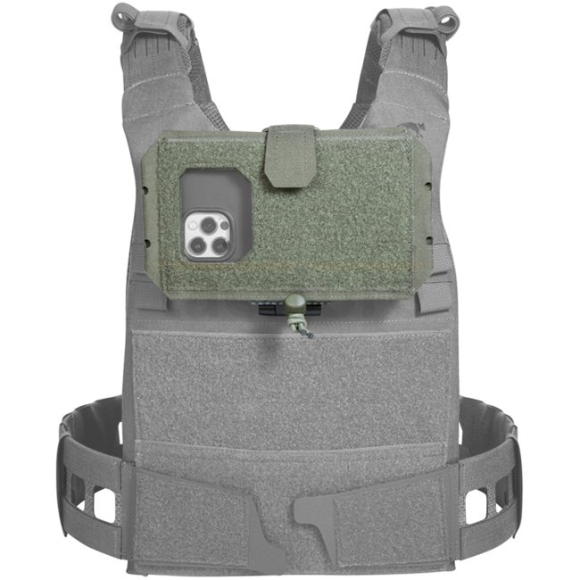 Die TT Foldable Phone Plate IRR ist eine horizontale Halterung zur Befestigung am Brustbereich von Plattenträgern. Aus einem 12-lagigen Tegris®-Kern gefertigt, lässt sich die Platte nach vorne klappen. Der Smartphone-Haltebereich wird durch individuell geschlungene Bungee-Kordeln fixiert. Alle Materialien, Klettflächen und Schnallen erfüllen die IRR-Normen TL 8305-0278/TL 8305-0281 im Spektralbereich von 650–1250 nm (10–42 %) für reduzierte Infrarot-Signatur.