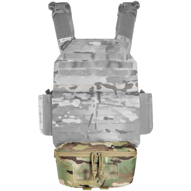 Diese multifunktionale Tasche kann unter einem Plattenträger befestigt oder als Hüfttasche getragen werden. Ideal als low-profile Erweiterung von Tragesystemen mit hoher Vielseitigkeit.