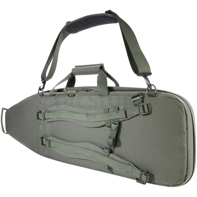 Diese gepolsterte Waffentasche ist für Mitteldistanzwaffen bis zu 95 cm Länge und 26 cm Höhe ausgelegt und bietet ein Waffenfach sowie eine grosse Außentasche mit drei fest vernähten Magazintaschen, MOLLE-Klettflächen zur individuellen Bestückung und eine Reissverschluss-Netztasche.