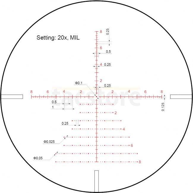 - SFP VCT-20A MIL-Absehen mit beleuchtetem Mittelpunkt und Christmas-Tree-Layout