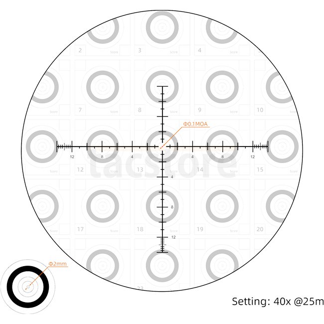 - SFP VCO-6 MOA-Absehen mit 0.1 MOA Punkt und 1 MOA Markierungen