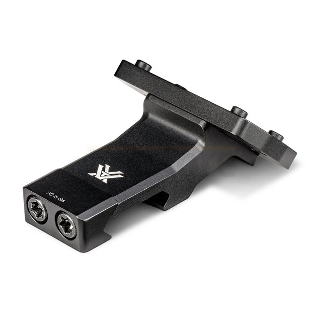 Die Vortex Pro 45° Offset Accessory Picatinny Mount ermöglicht es, ein Red-Dot oder anderes Zubehör im 45° Winkel zur Schiene zu montieren. So kann schnell zwischen primärem und sekundärem Visier gewechselt werden, ohne Griff oder Kopfposition verändern zu müssen.